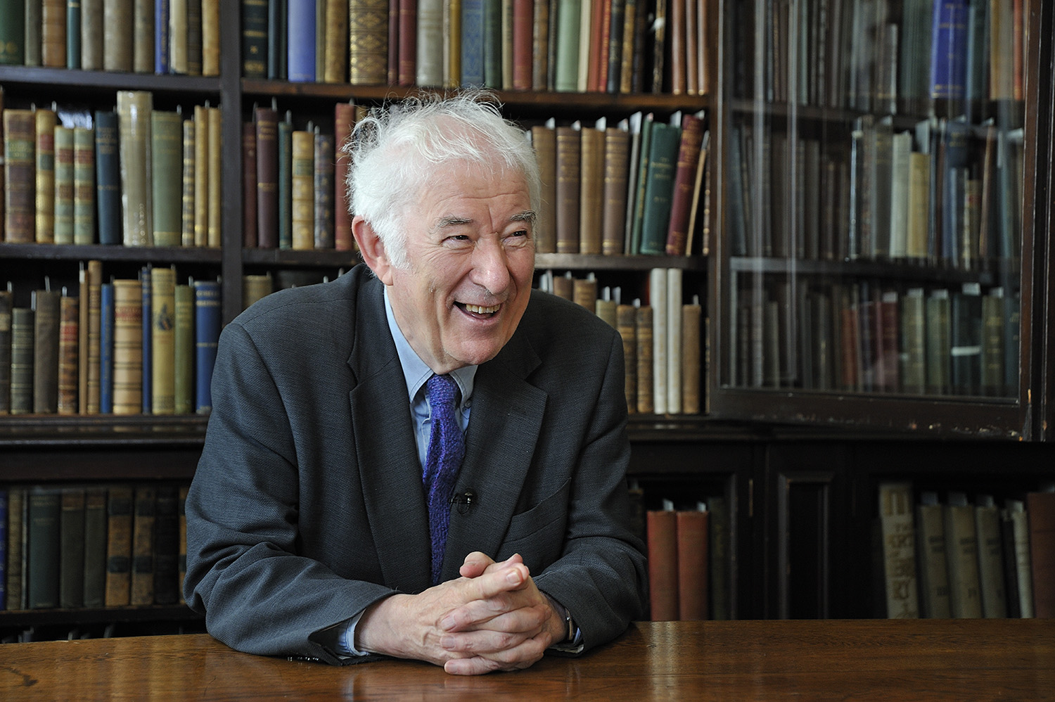 Nobel Laurette poet and writer Seamus Heaney inside The Linen Hall Library, Belfast, N.Ireland