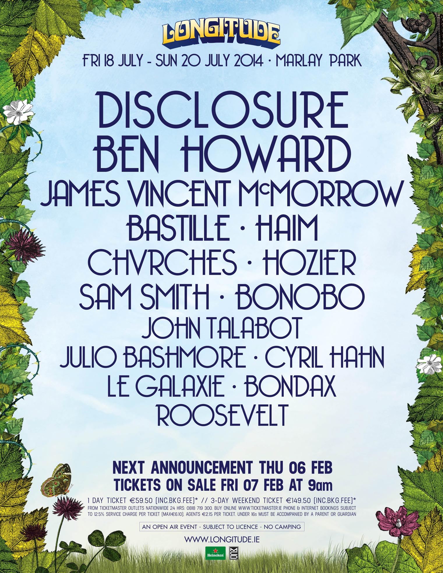 LONGITUDE 2014[1] Bastille, Haim, Chvrches and more announced for Longitude so far. by RobMoroJanuary 25, 2014 Share this: Click to share on X (Opens in new window) X Click to share on Facebook (Opens in new window) Facebook Click to share on LinkedIn (Opens in new window) LinkedIn Click to share on WhatsApp (Opens in new window) WhatsApp Click to email a link to a friend (Opens in new window) Email More Click to share on Pocket (Opens in new window) Pocket Click to share on Pinterest (Opens in new window) Pinterest Click to share on Tumblr (Opens in new window) Tumblr Click to print (Opens in new window) Print Post navigation Previous Post