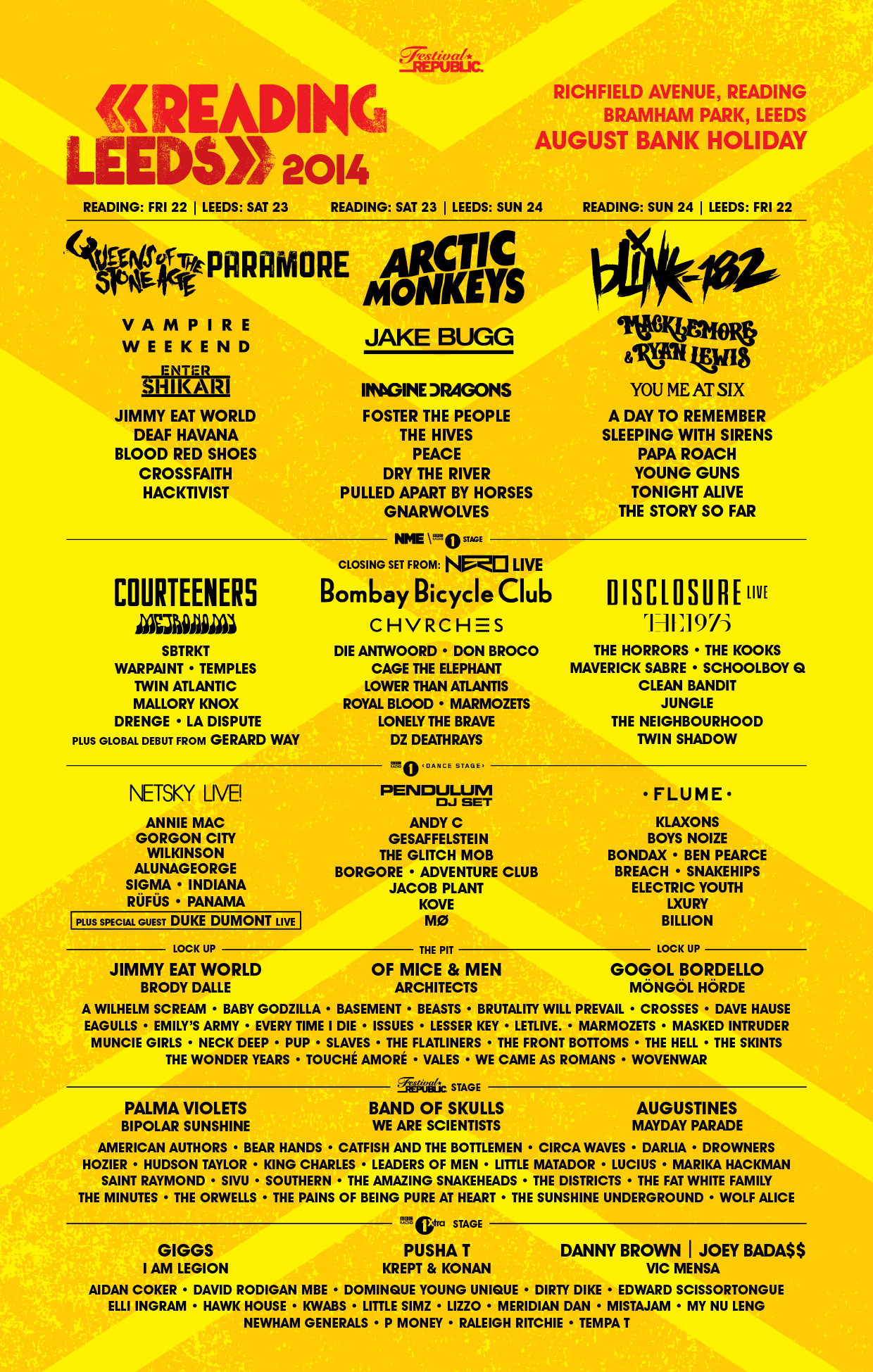 R&L 2014 Line-up_May 29th Leaders Of Men among the Irish acts at Reading and Leeds Festivals this year. by RobMoroJune 9, 2014 Share this: Click to share on X (Opens in new window) X Click to share on Facebook (Opens in new window) Facebook Click to share on LinkedIn (Opens in new window) LinkedIn Click to share on WhatsApp (Opens in new window) WhatsApp Click to email a link to a friend (Opens in new window) Email More Click to share on Pocket (Opens in new window) Pocket Click to share on Pinterest (Opens in new window) Pinterest Click to share on Tumblr (Opens in new window) Tumblr Click to print (Opens in new window) Print Post navigation Previous Post
