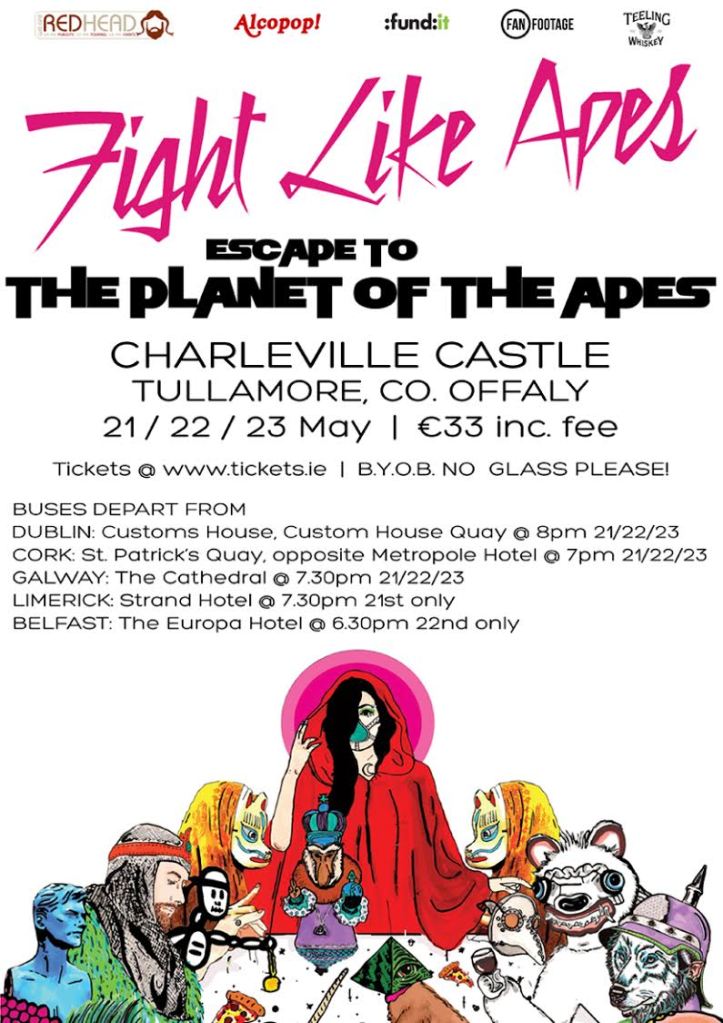Escape To The Planet Of The Apes will see FLA take up residence in Charleville Castle, Tullamore) on Thursday 21 / Friday 22 / Saturday 23 May.
