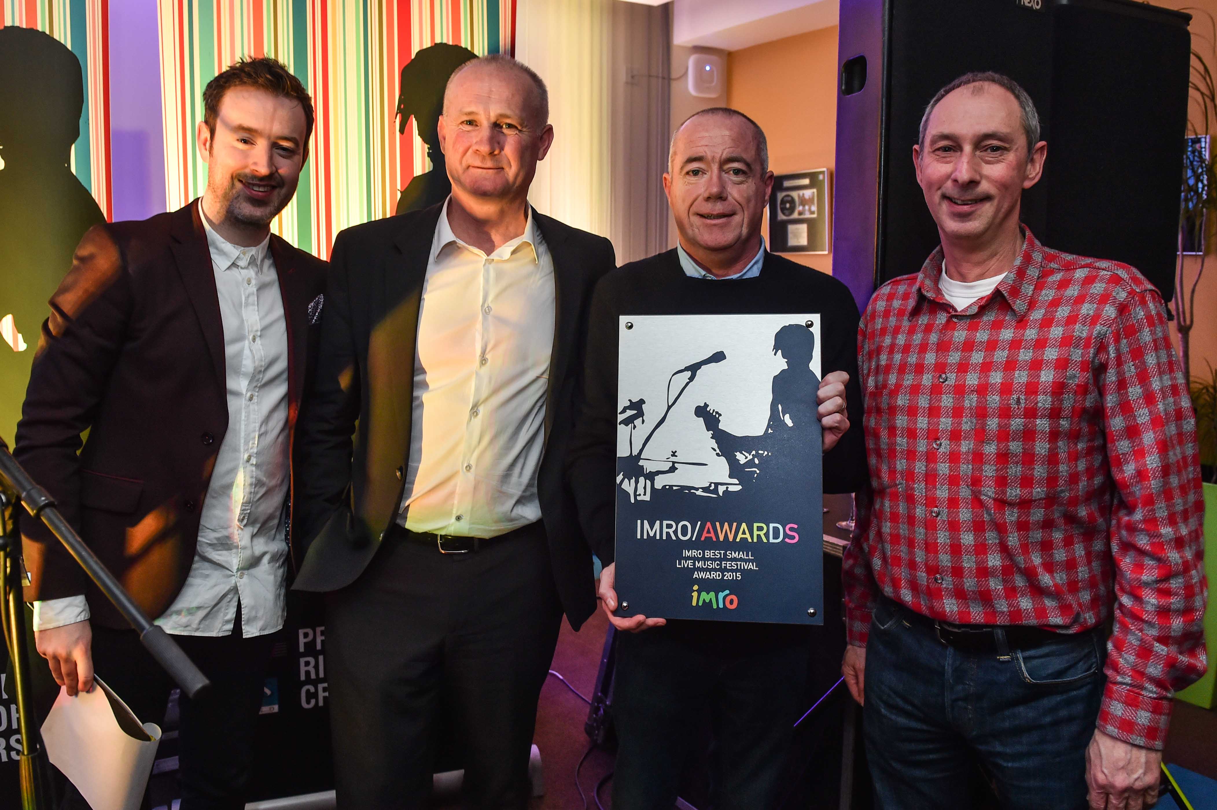 Martin Byrne from Other Voices accepting the award for IMRO Best Small Festival 2015 with Paddy McKenna, Victor Finn & Steve Lindsey.