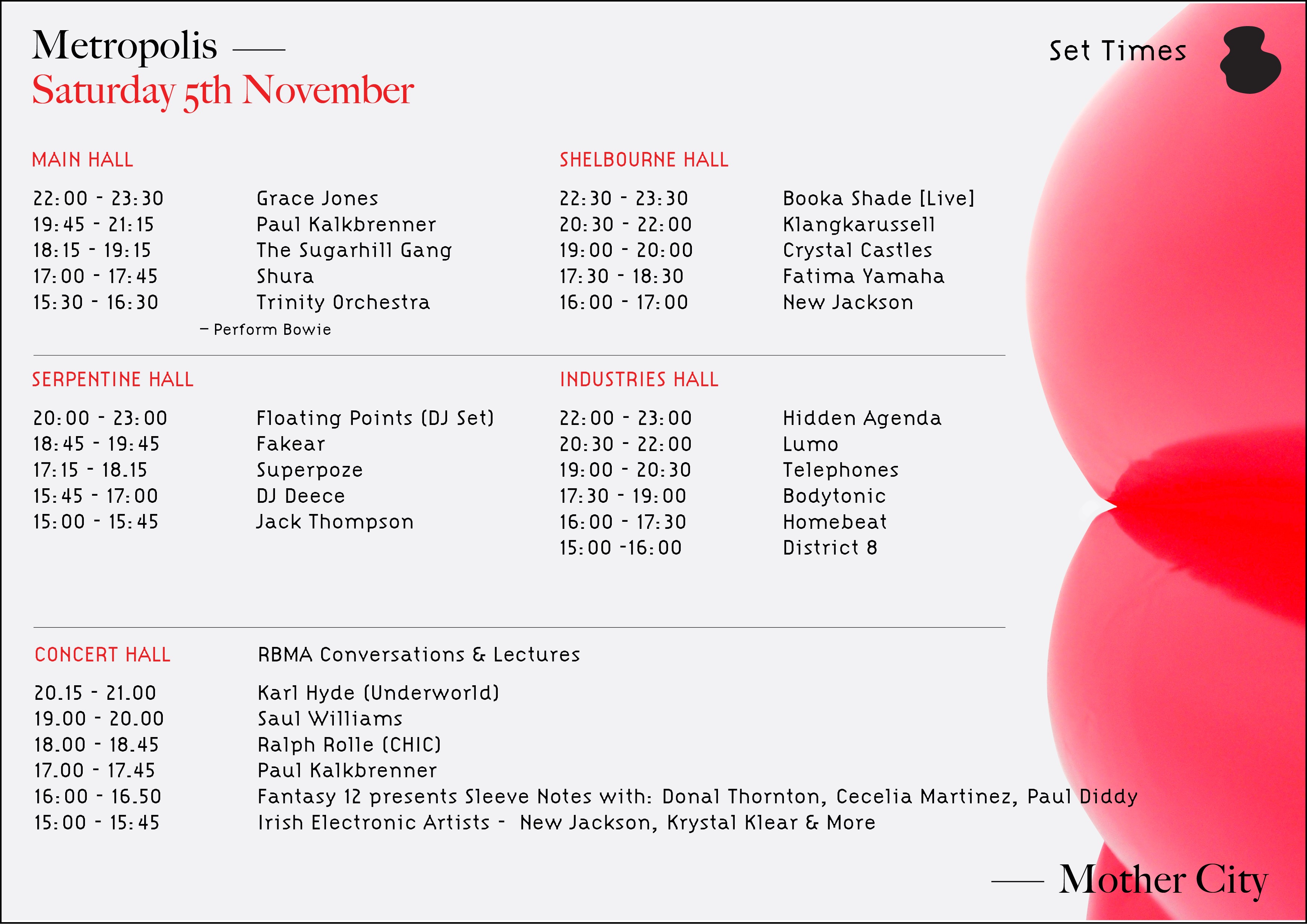 saturday-metropolis Saturday stage times. by RobMoroNovember 3, 2016 Saturday stage times. Share this: Click to share on X (Opens in new window) X Click to share on Facebook (Opens in new window) Facebook Click to share on LinkedIn (Opens in new window) LinkedIn Click to share on WhatsApp (Opens in new window) WhatsApp Click to email a link to a friend (Opens in new window) Email More Click to share on Pocket (Opens in new window) Pocket Click to share on Pinterest (Opens in new window) Pinterest Click to share on Tumblr (Opens in new window) Tumblr Click to print (Opens in new window) Print Post navigation Previous Post